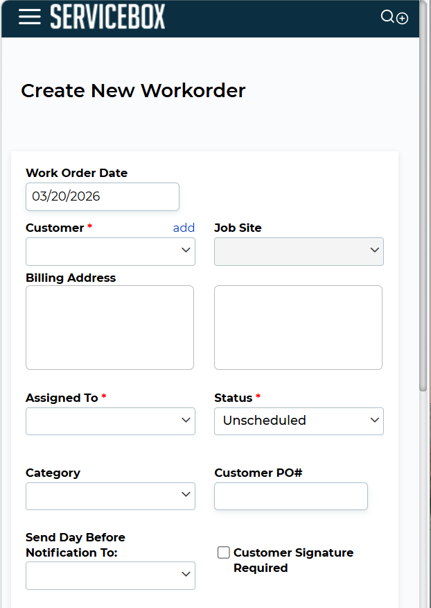 This article will explain how a technician can create a new work order inside the ServiceBox Mobile application.