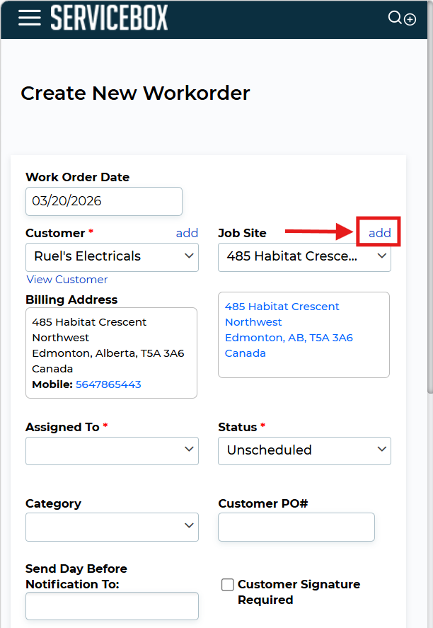 Click Save to save the customer. Once you do the new customer will be selected and the job site.
