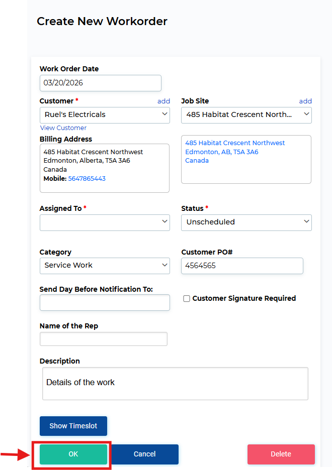 Once you enter in all of the required fields click save and the work order will be ready to be scheduled.