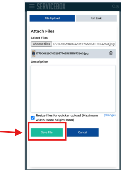 Immediately on the next screen, tap the “Save file” button to lock the photo onto the Work Order.