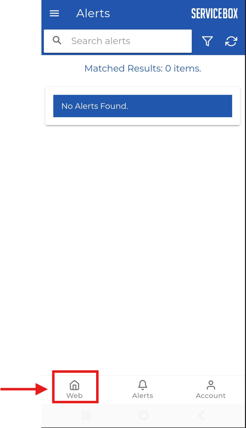 Step 6: Select Web from the menu to access the full ServiceBox web application in-browser.