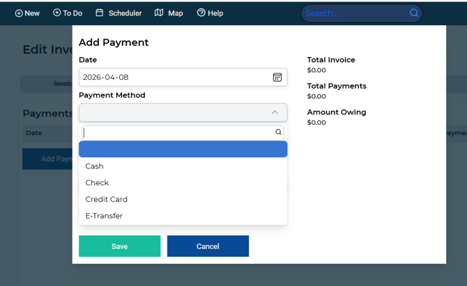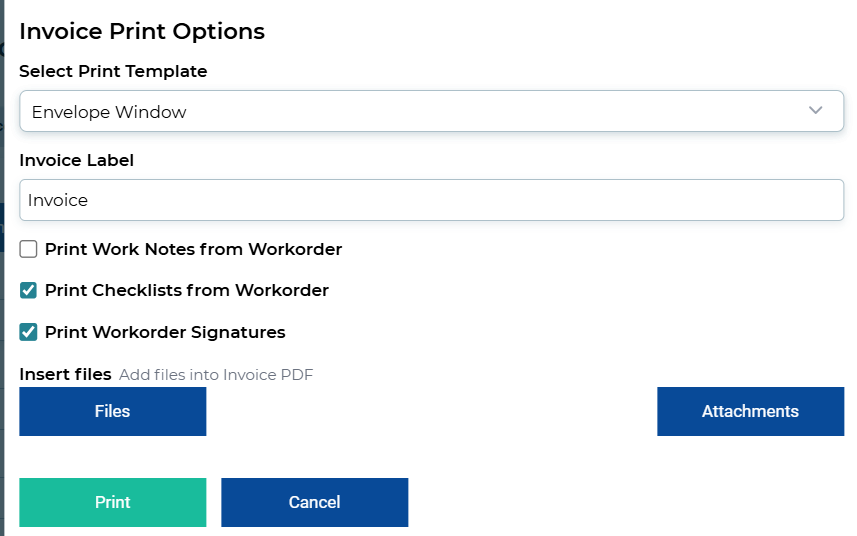 Once the Invoice has been created, the following icons are available: