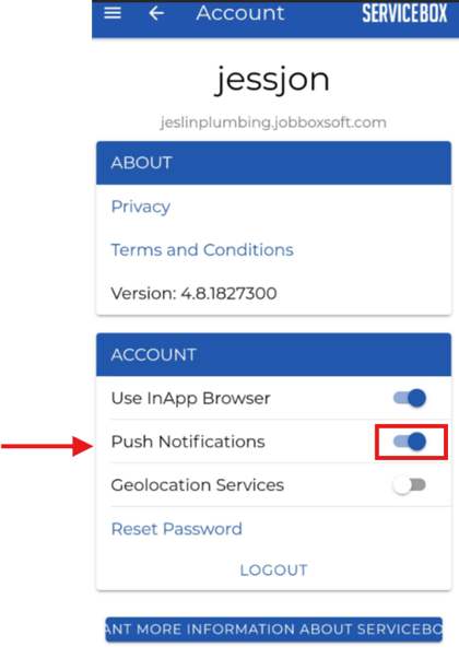 Make sure that your device's settings allow ServiceBox to show notifications.
