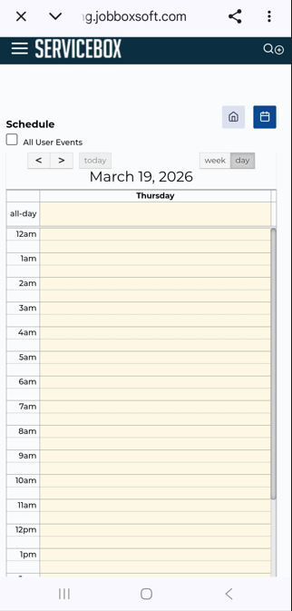 - Ensure that you are on the Calendar screen in the ServiceBox App on your smartphone.
