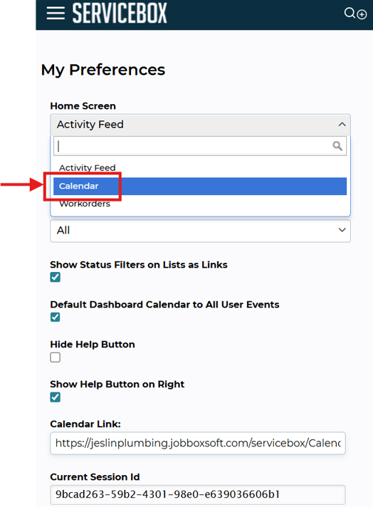 Change the Home Screen to Calendar, and Save.